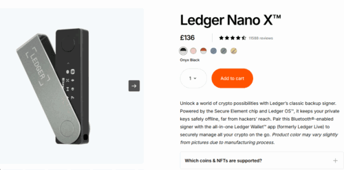 | 6 | Ledger Nano X | Cold | £120-£140 | 5500+ |