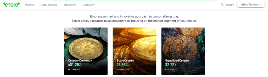 Smart Portfolios are thematically structured investment baskets managed by eToro’s investment team. They are rebalanced periodically but not actively traded like a mutual fund. You’ll find options covering AI, dividend stocks, green energy, crypto, and more. They are fully managed, which makes them great for hands-off investors.